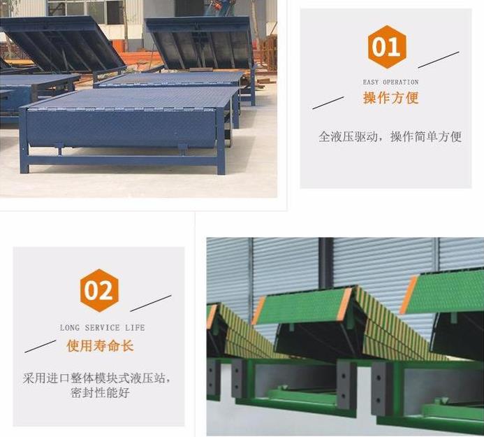 1、固定式登車橋電動液壓高度可任意調(diào)節(jié) ,提高裝卸效率的液壓固定式登車橋,采用全液壓驅動,操作方便運行可靠。